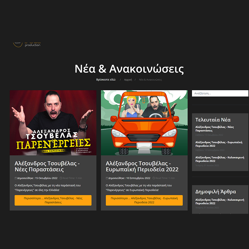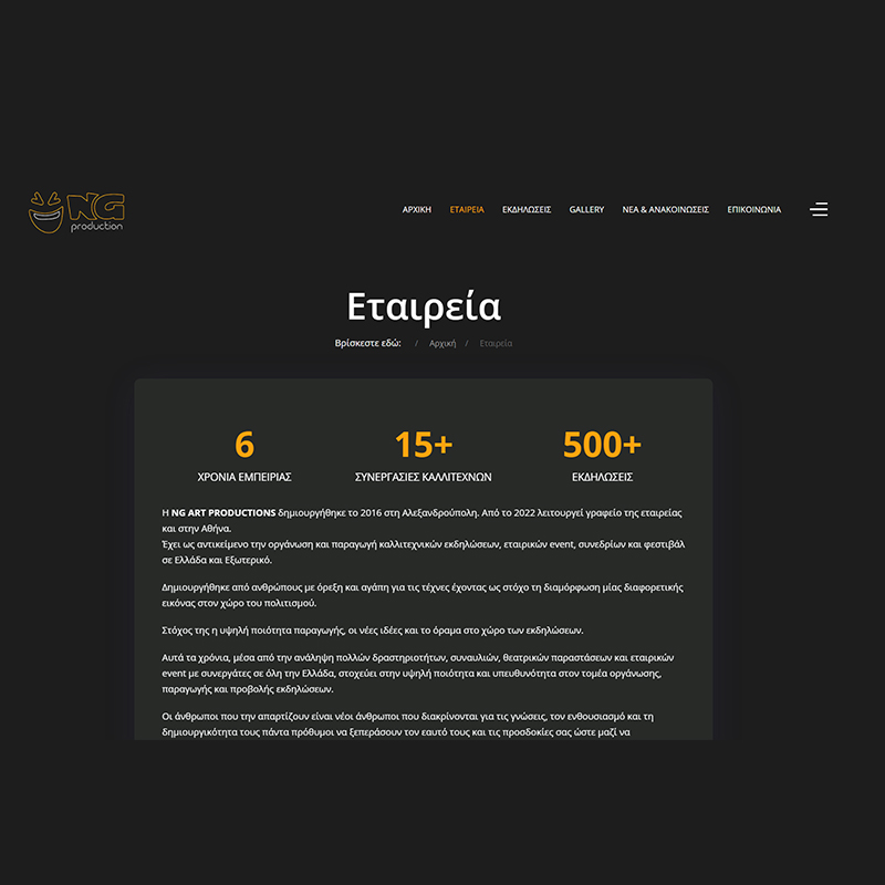 NG Productions, entrusted us with the development of their professional website, with scope the presentation of the offered services, the events they are organising and producing. Also they asked for a booking system for the upcoming events in order to book tickets.