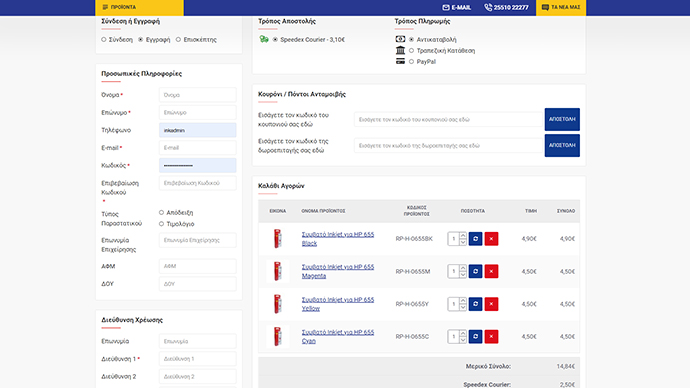 Multiple payment methods are supported (Cash on Delivery, Bank Deposit, Use of Debit / Credit Card, PayPal) while, for the use of a card, a bridge with the bank that cooperated with the store was developed.