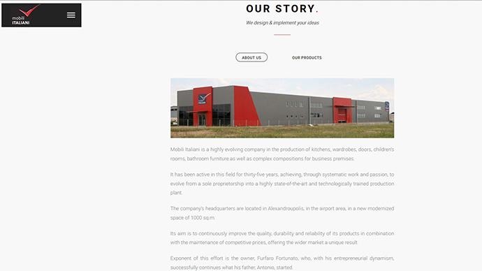 Mobili Italiani assigned us to develop its website for the presentation of the factory, the products and a sample of its implemented constructions.